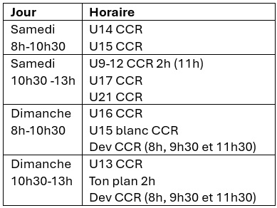 Horaire régulier des pratiques au Complexe Sportif Claude-Robillard